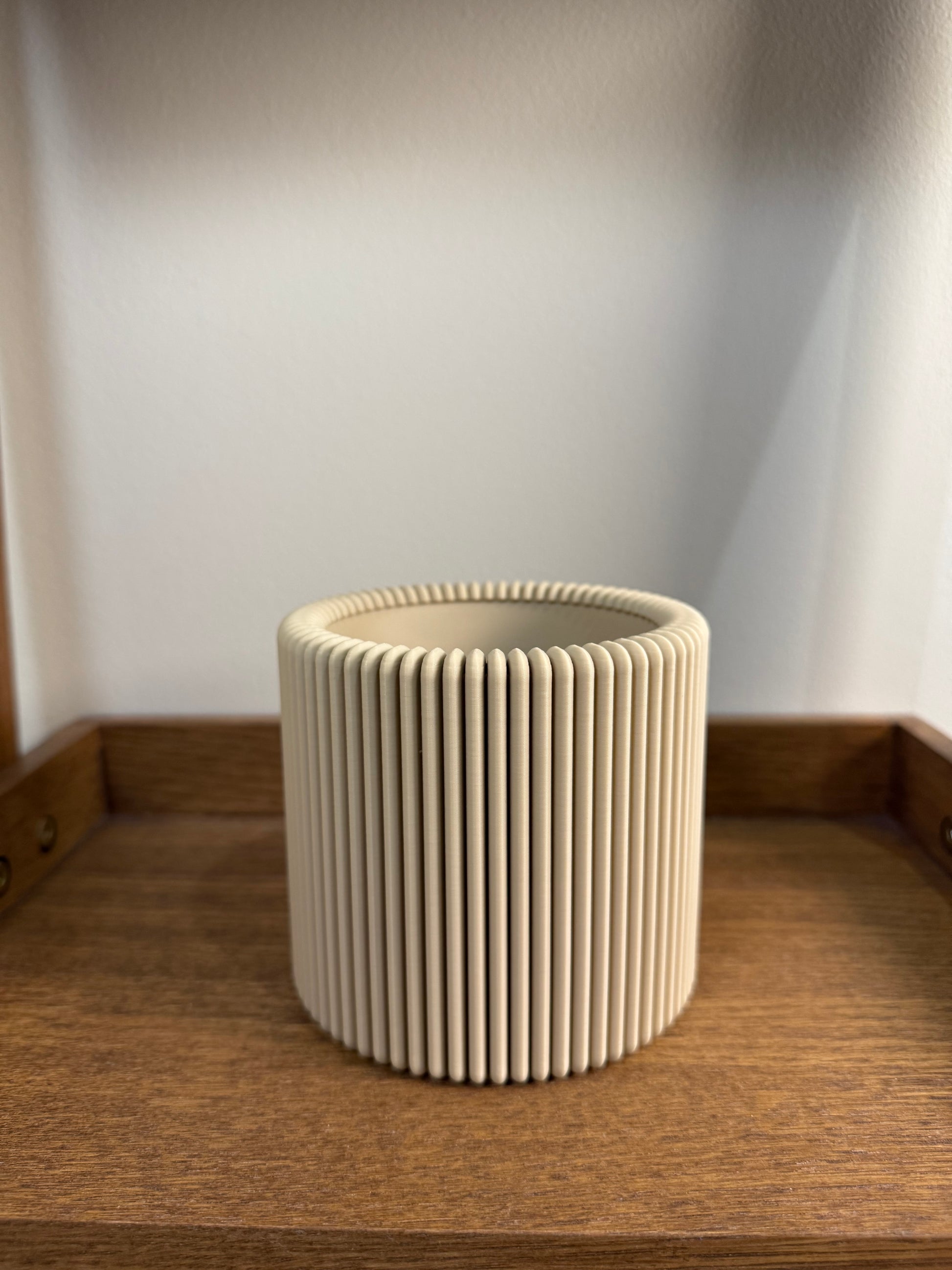 Elevate your workspace with the Textured Harmony Stationery Pot. With its elegant ribbed design, this pot transforms everyday organisation into a work of art. Inspired by the subtle beauty of modern minimalism, it gracefully holds your pens, brushes, and other essentials, blending form and function in a way that feels effortlessly chic. Add a touch of refined artistry to your desk with a piece that’s as practical as it is beautiful. Perfect for those who appreciate the finer details in life.
